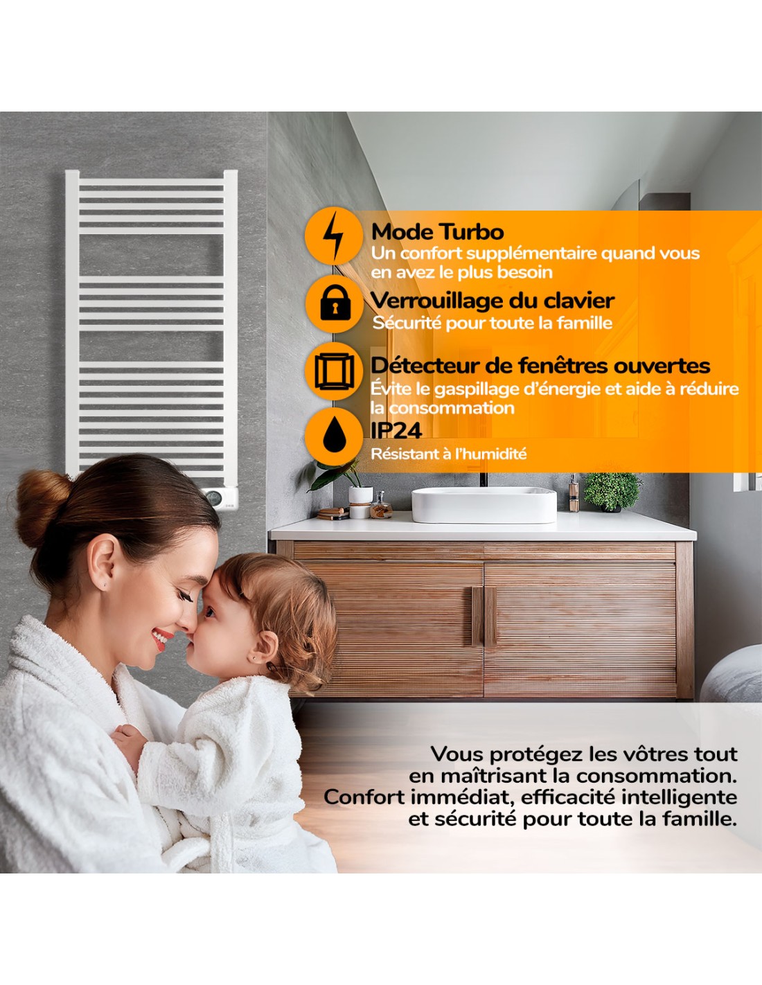 Nos radiateurs sèche-serviettes sont fabriqués en aluminium, un excellent transmetteur de chaleur et un matériau résistant à la corrosion causée par l’humidité dans les salles de bain.