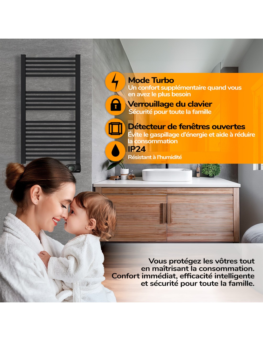 Nos radiateurs sèche-serviettes sont fabriqués en aluminium, un excellent transmetteur de chaleur et un matériau résistant à la corrosion causée par l’humidité dans les salles de bain.