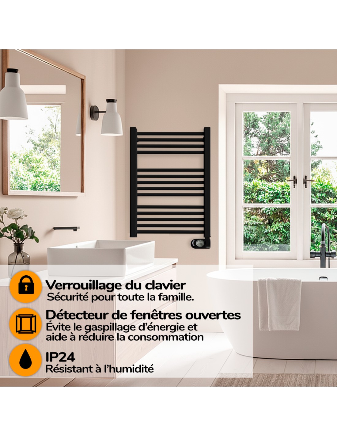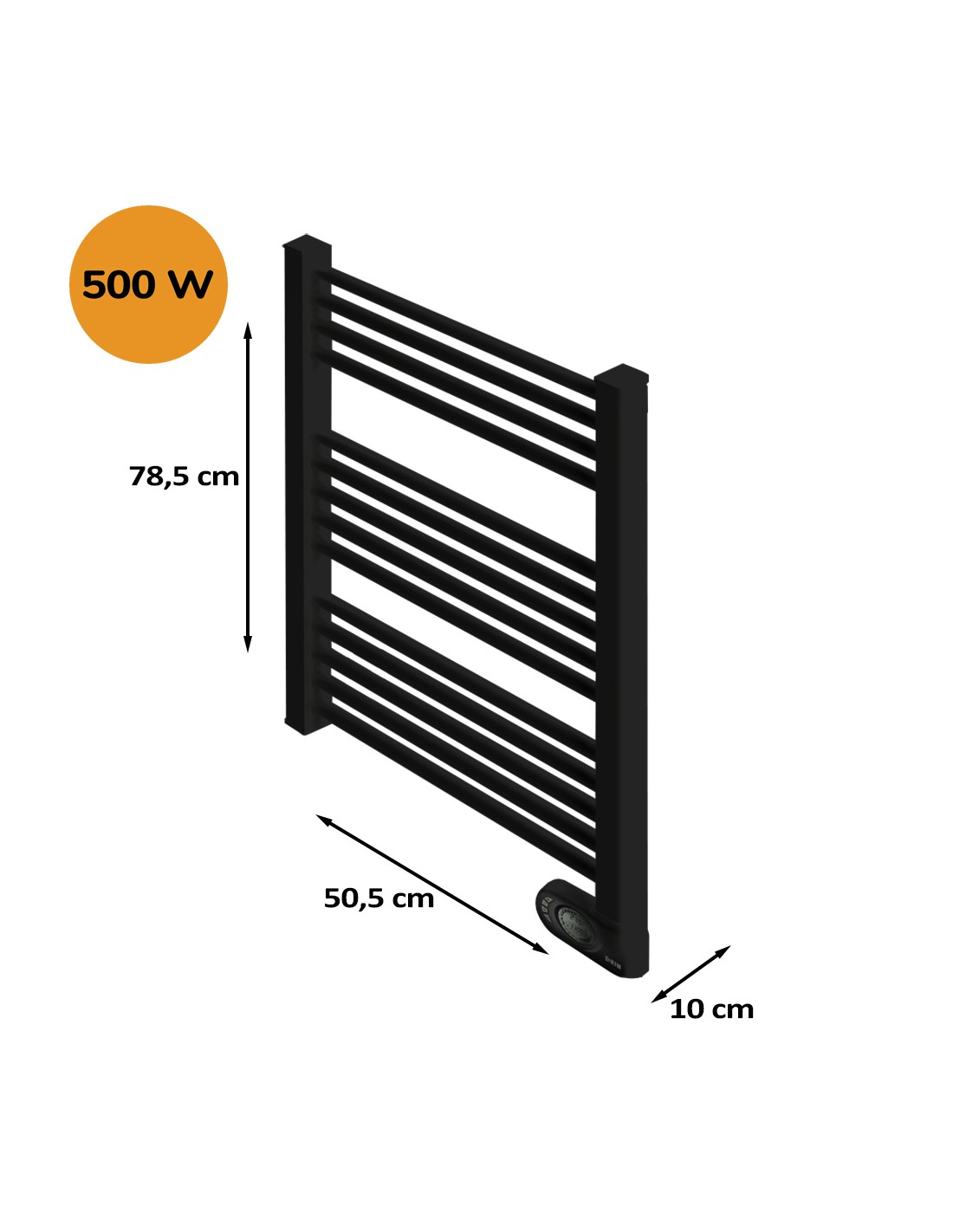 Sèche-serviettes électrique à inertie sèche HJM, 500 W, Noor, Noir